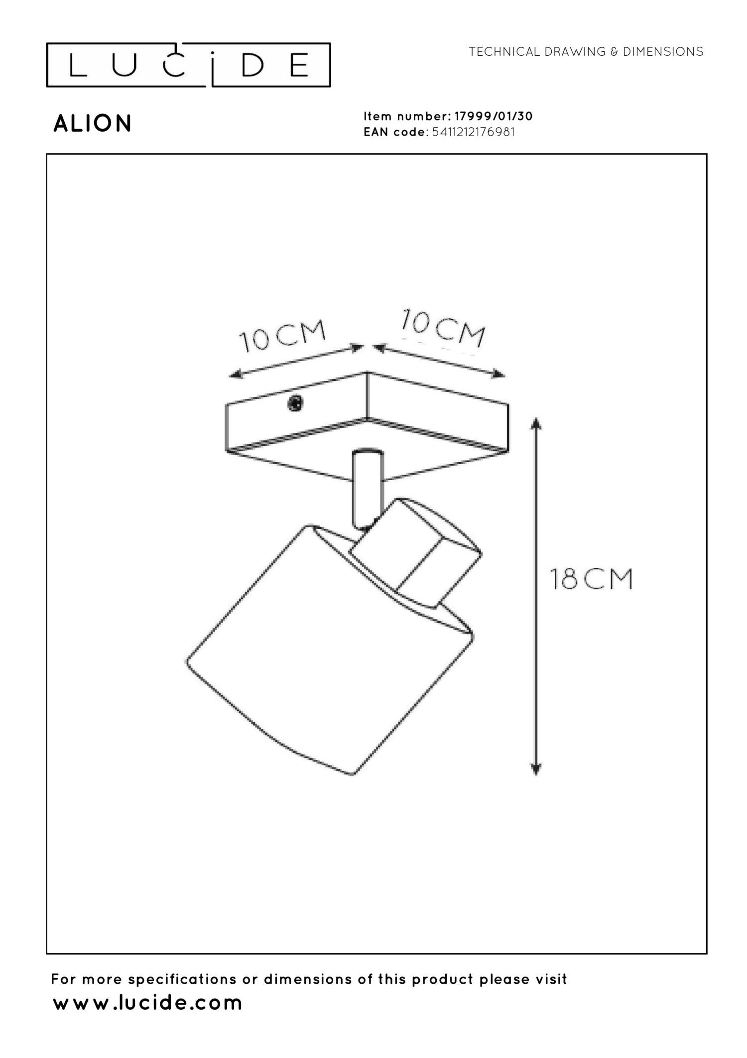 Zoek je naar een plafondspot met net dat ietsje meer? Dan is Alion de ideale keuze. Deze spot is 18 centimeter hoog, met een vierkante, metalen plafondplaat van 10 op 10 centimeter. De lampenkap bestaat uit fuméglas in een afgerond vierkant dat zich rond de lichtbron bevindt. Zo krijgt de klassieke vormgeving van Alion meteen een moderne toets. De plafondlamp is draai- en kantelbaar en sluit je eenvoudig aan op een dimmer. Het perfecte licht waar en waneer je het nodig hebt? Alion is er klaar voor.