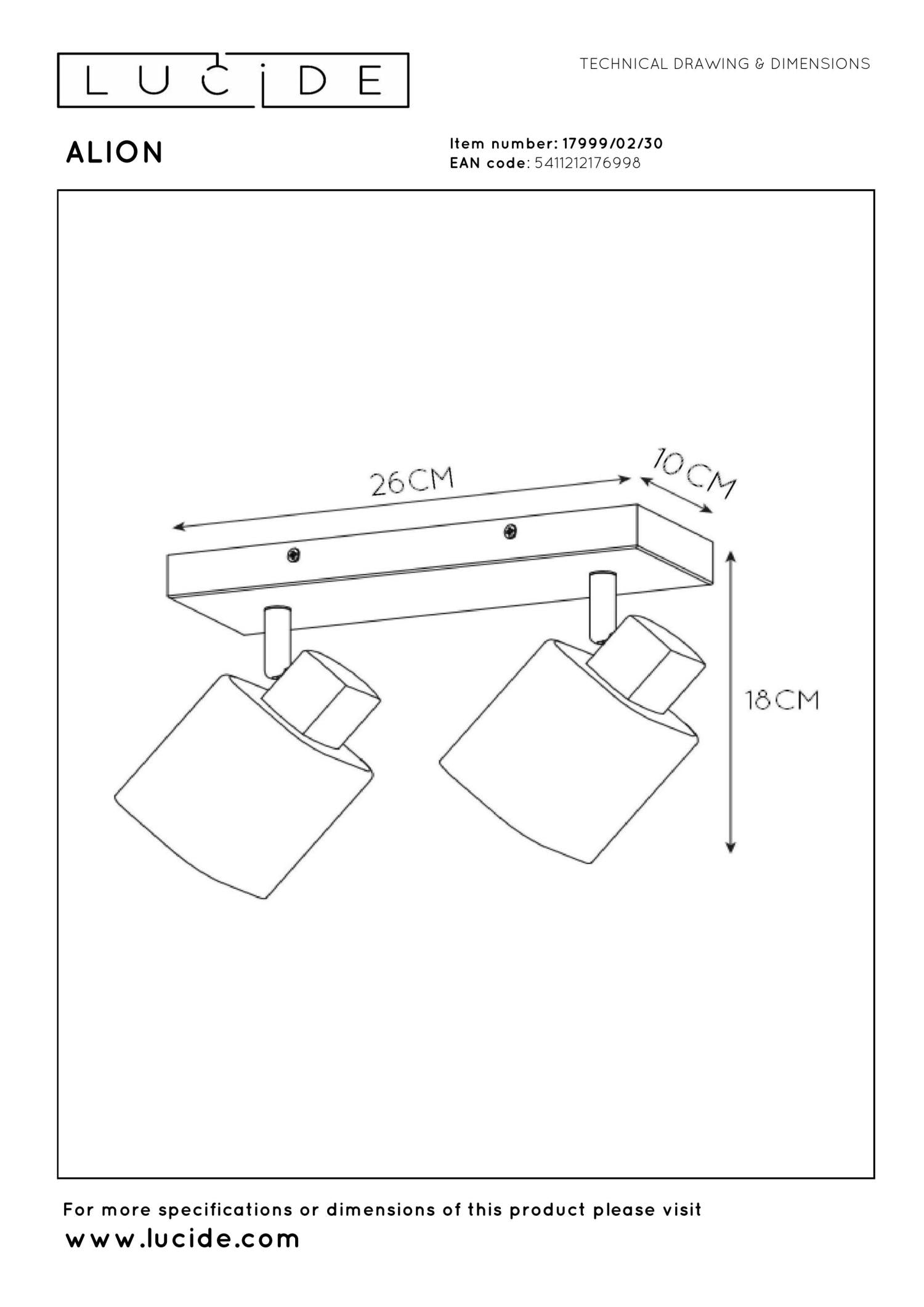 Zoek je plafondspots met net dat ietsje meer? Dan is Alion de ideale keuze. Deze plafondlamp met twee lichtpunten is 18 centimeter hoog, met een rechthoekig, metalen plafondplaat van 26 op 10 centimeter. De lampenkappen bestaan uit fuméglas in een afgerond vierkant dat zich rond de twee lichtbronnen bevindt. Zo krijgt de klassieke vormgeving van Alion meteen een moderne toets. De plafondlamp is draai- en kantelbaar en sluit je eenvoudig aan op een dimmer. Het perfecte licht waar en waneer je het nodig hebt? Alion is er klaar voor.