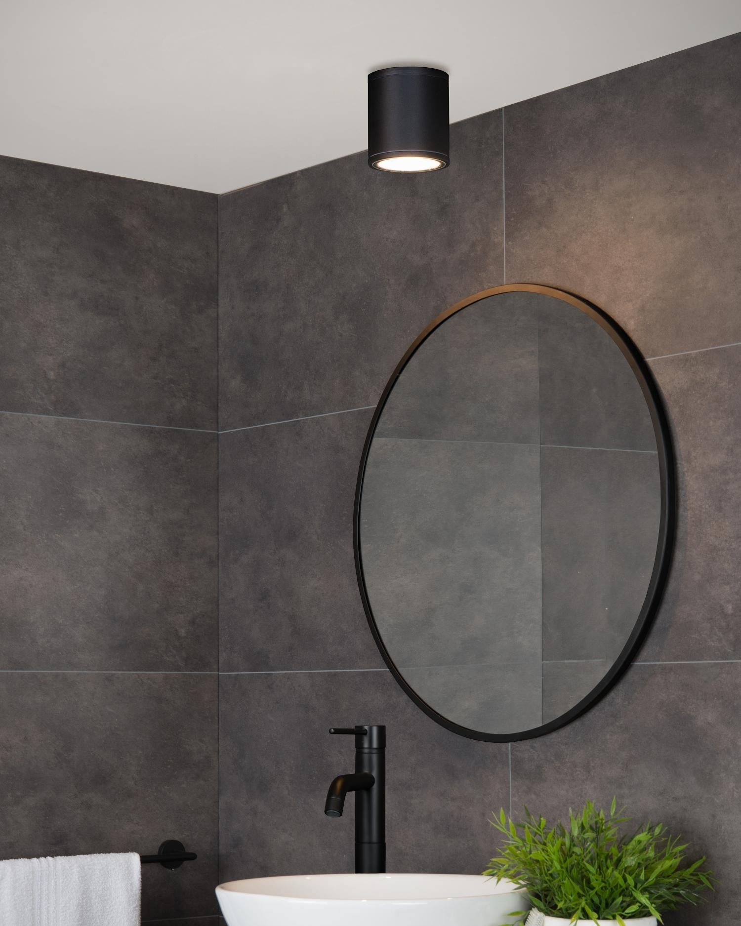 Plafondspot Badkamer/buiten rond zwart