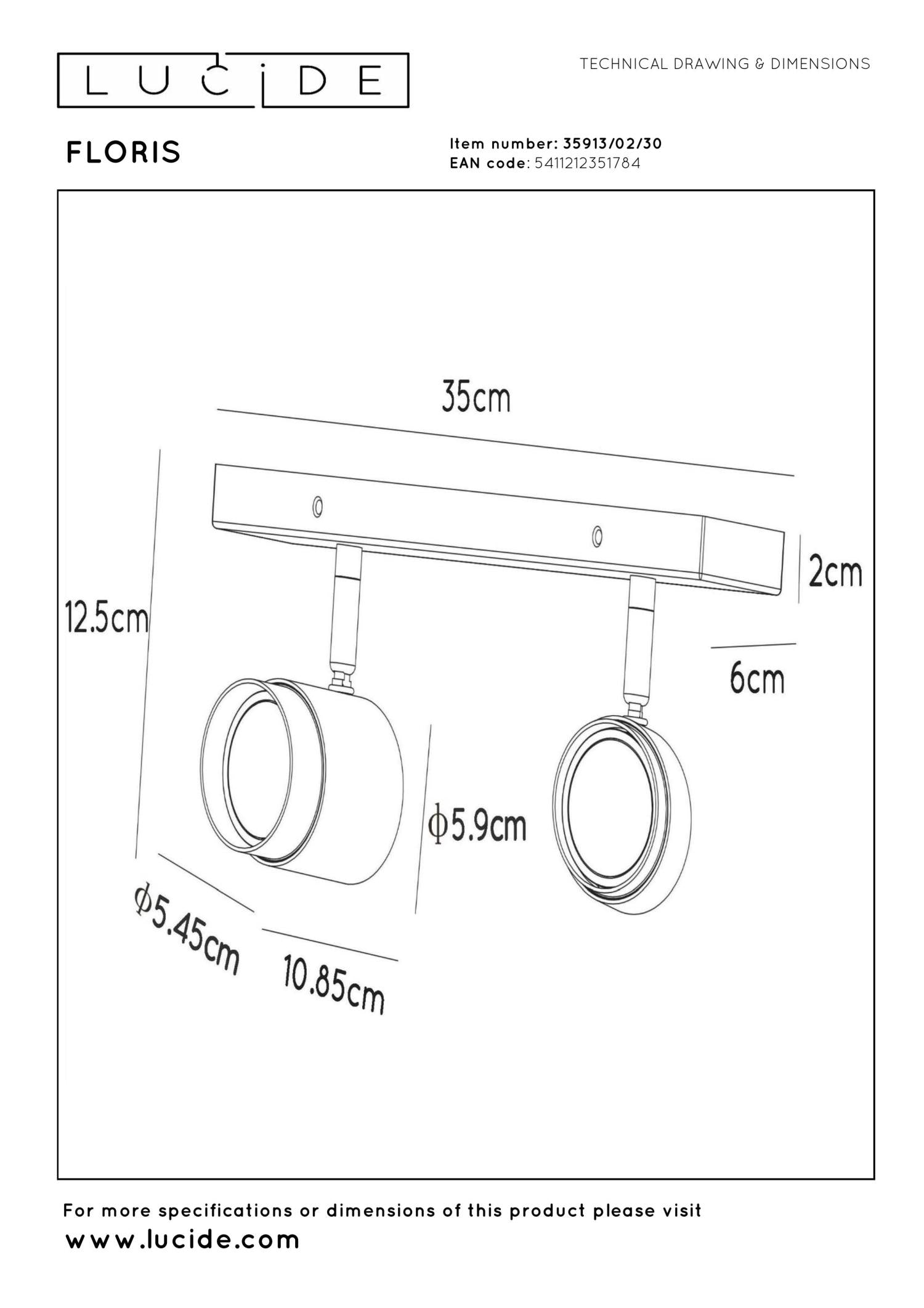 Floris biedt een moderne en warme kijk op plafondspots. Deze versie beschikt over 2 lichtpunten en is gemaakt uit hoogwaardig aluminium. De cilindervorm van 10 centimeter diameter kreeg een getrapt effect die bijdraagt tot Floris zijn hedendaagse looks. Je kan de lichtpunten eenvoudig draaien en kantelen. Zo schep je licht op de plaatsen waar je het nodig hebt. Sluit deze plafondlamp aan op een dimmer voor de gewenste sfeer in iedere ruimte van een klassiek of modern interieur.