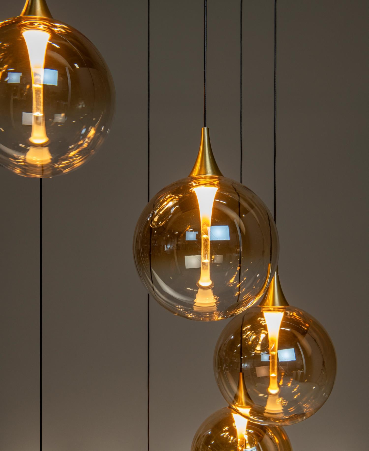 Vind je het soms moeilijk om alle ballen in de lucht te houden? Laat dat maar over aan Gisela, een hanglamp die uit verschillende pendels met heldere, glazen bollen bestaat, die elk verstelbaar zijn in hoogte. De geïntegreerde ledlampen zijn dimbaar en verspreiden een warm wit licht. Dit tijdloze bolvormig ontwerp doet het goed in zowel klassieke interieurs als moderne vormgevingen. Of je ze nu op gelijke hoogte of speels aflopend ophangt: scoren doe je met deze elegante hanglamp altijd.