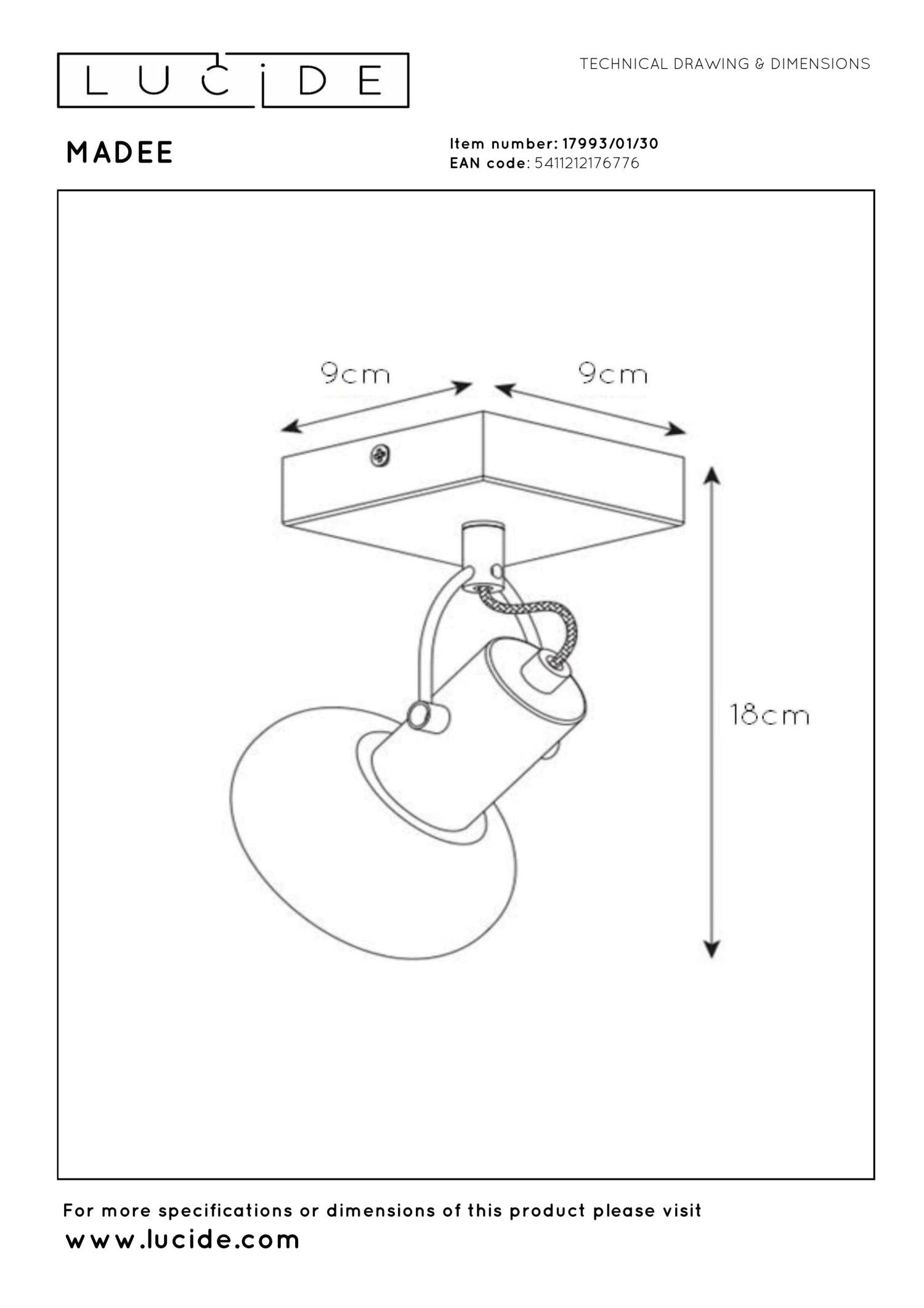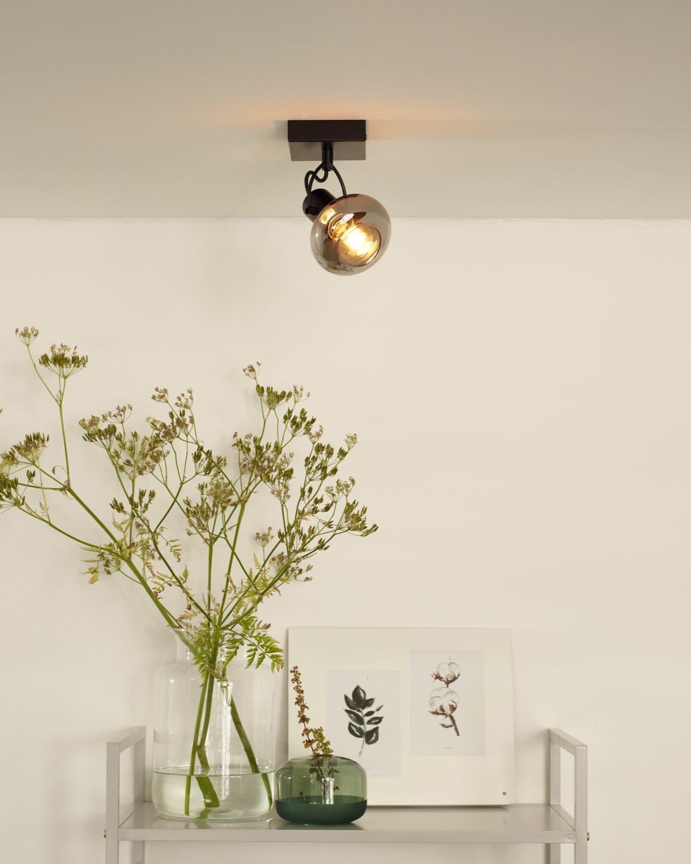 Klasse en elegantie samen in een uniek ontwerp, met een basis in metaal en een lampenkap in glas. Madee, zo heet deze plafondspot, voelt zich thuis in elke ruimte. Een woonkamer, hal of keuken? Zelfs in het kleinste kamertje voelt Madee zich thuis. Je kan de armatuur makkelijk kantelen en draaien in functie van de plek waar je precies licht nodig hebt. Wat minder licht nodig? Je sluit Madee eenvoudig aan op een dimmer. En dankzij het montageplaatje bevestig je de spot snel en makkelijk aan het plafond. Het leuke is dat je niet voor een gewoon spotje hoeft te kiezen: Madee is compatibel met een ledlamp. Dus waarom niet kiezen voor een filamentlamp voor die extra sfeerfactor?