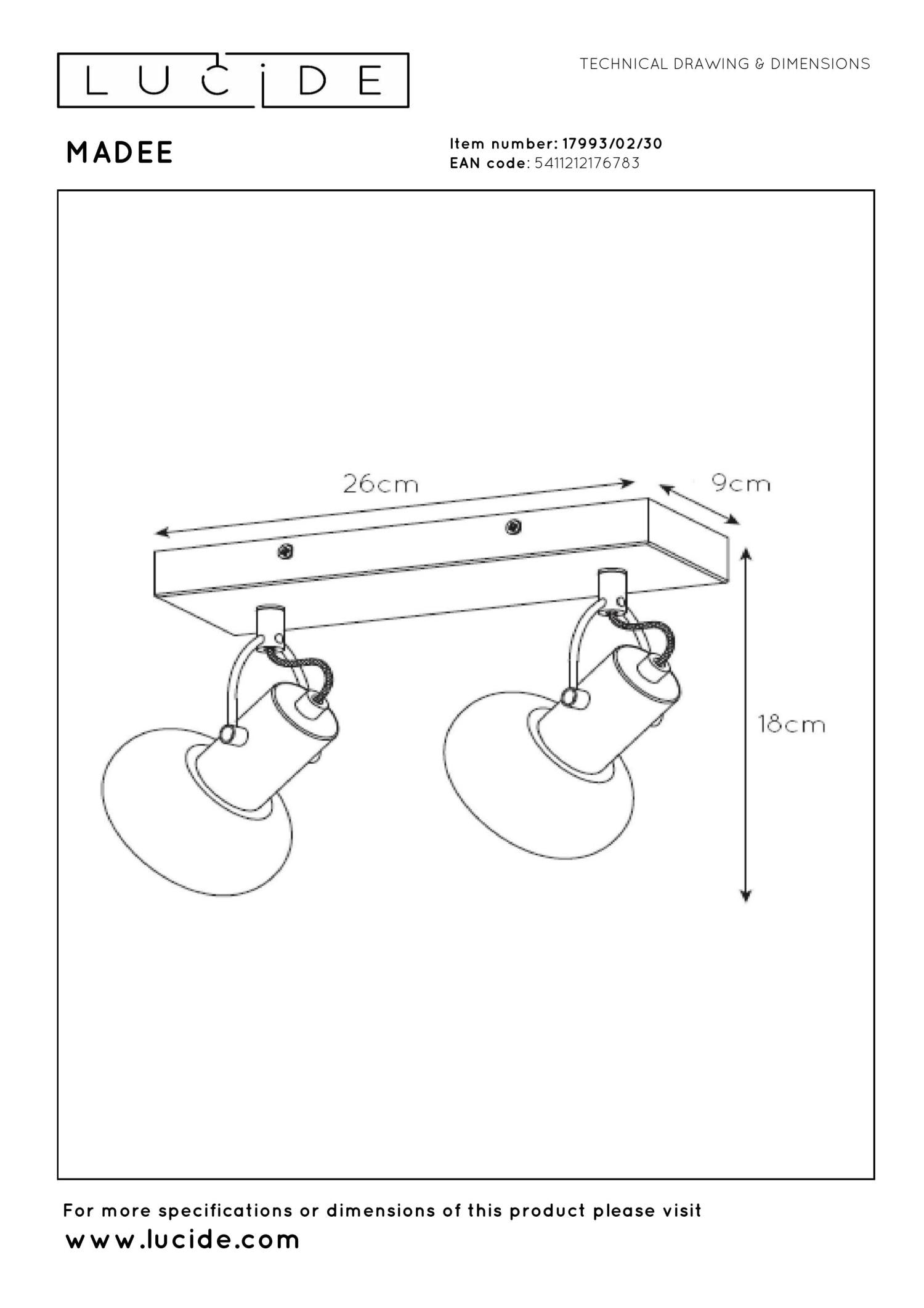 • Verbruik: 2x25W / 230V / Dimbaar (lichtbronnen niet inbegrepen)