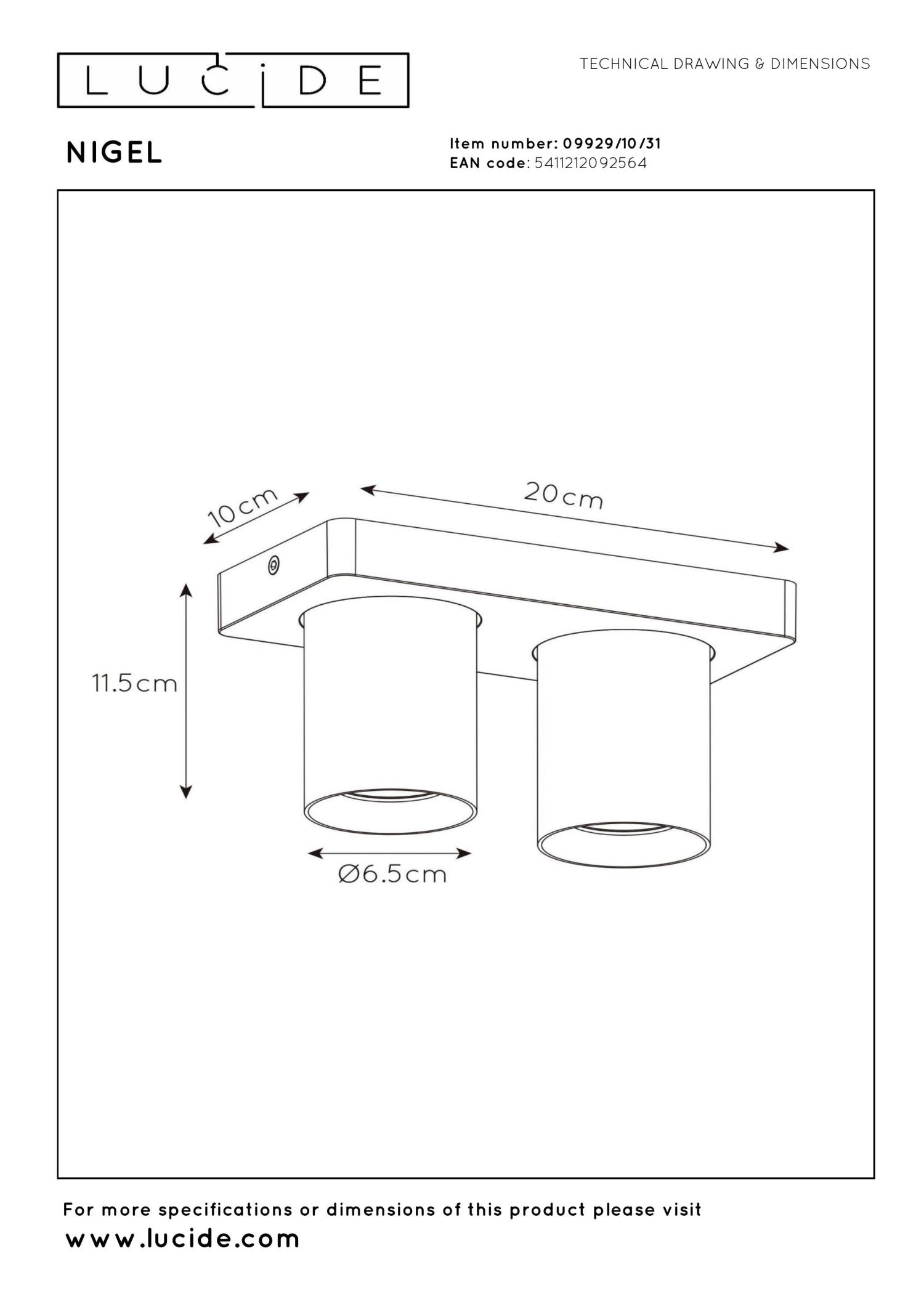 Dit is Nigel, een plafondspot compatibel met twee GU10 dim to warm ledlichtbronnen. Deze geven licht van 2200 tot 3000k. Een eenvoudig en tijdloos ontwerp met een cilindervormige lampenkap zodat de spot zich in allerlei interieurstijlen thuis voelt. Nigel is zowel in het zwart als wit beschikbaar. En met verschillende lichtpunten. De witte variant kreeg een zwart accent mee aan de binnenzijde van het armatuur. De plafondspot is gemaakt uit aluminium en is 12 centimeter hoog. Bevestig Nigel aan het plafond, sluit aan op een compatibele dimmer, draai en kantel de spots naar keuze en geniet.