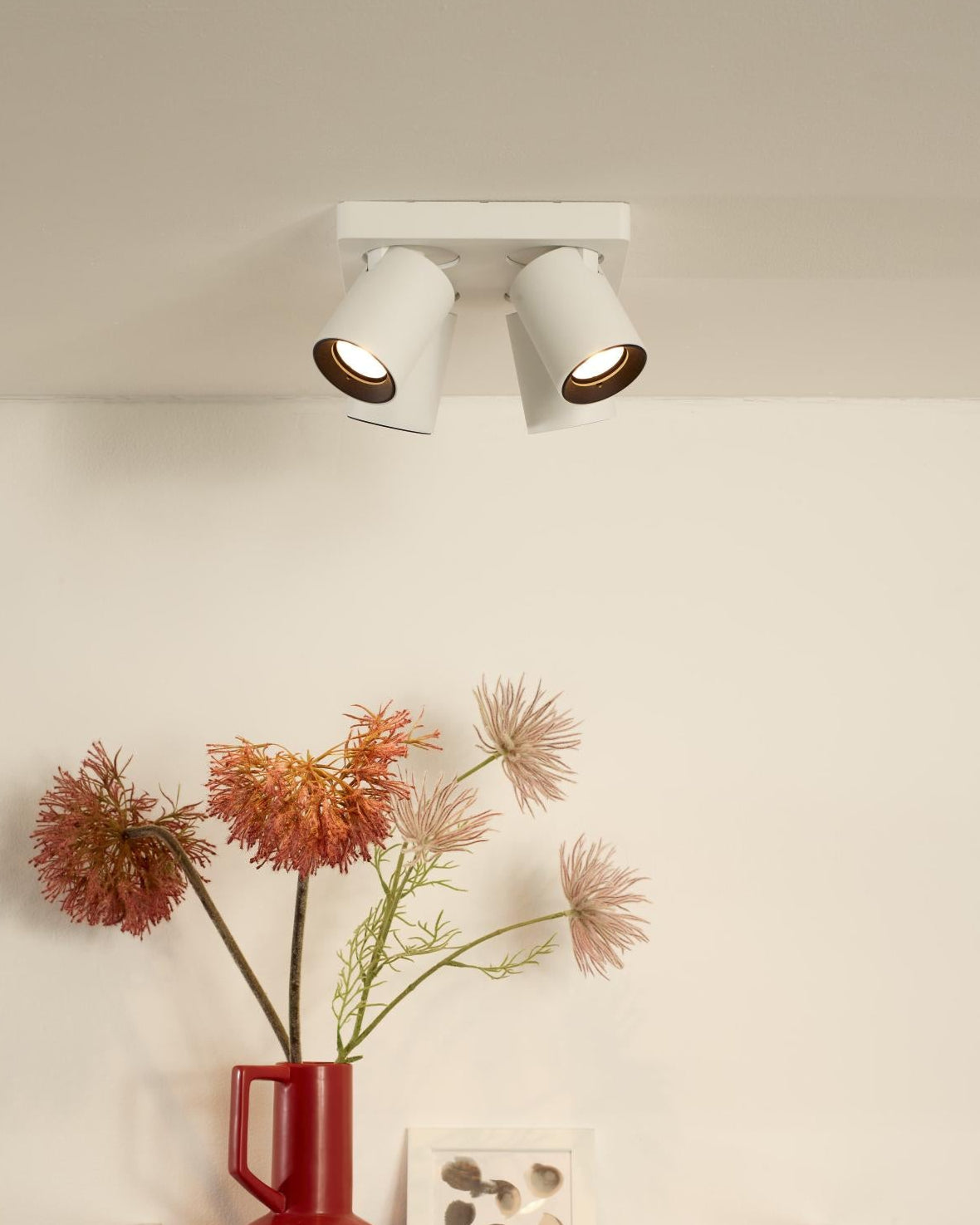 Dit is Nigel, een plafondspot compatibel met vier GU10 dim to warm ledlichtbronnen. Deze geven licht van 2200 tot 3000k. Een eenvoudig en tijdloos ontwerp met een cilindervormige lampenkap zodat de spot zich in allerlei interieurstijlen thuis voelt. Nigel is zowel in het zwart als wit beschikbaar. En met verschillende lichtpunten. De witte variant kreeg een accent mee door de binnenzijde van het armatuur in het zwart te kleuren. De plafondspot is gemaakt uit aluminium en is 12 centimeter hoog. Bevestig Nigel aan het plafond, sluit aan op een compatibele dimmer, draai en kantel de spots naar keuze en geniet.