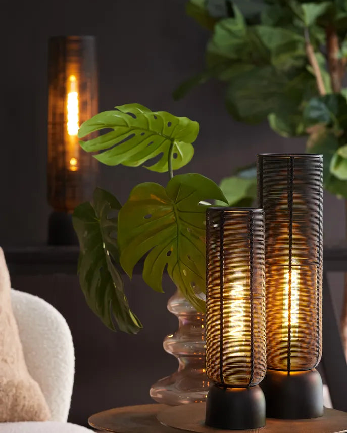 Deze stoere tafellamp is verkrijgbaar in 3 maten.